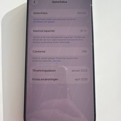 Säljer en iPhone 15 Pro 256 GB som fungerar som den ska. Batterihälsa 90% (Normal). Telefonen är använd men i bra skick i övrigt.