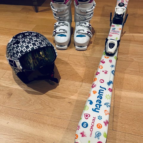 Head Monster slalomskidor i längd 117cm. Skidorna har blå ovansida med grafiskt mönster och svart belag. Monterade med bindningar. Passar för alpin åkning i pist. Lämpliga för barn nybörjare