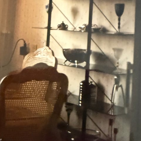 Hylla i valnöt med 2 lådor och vitrinskåp i bra skick. Höjden är 205 cm, bredd 44 cm och djup 34 cm. Finns i Vasastan.