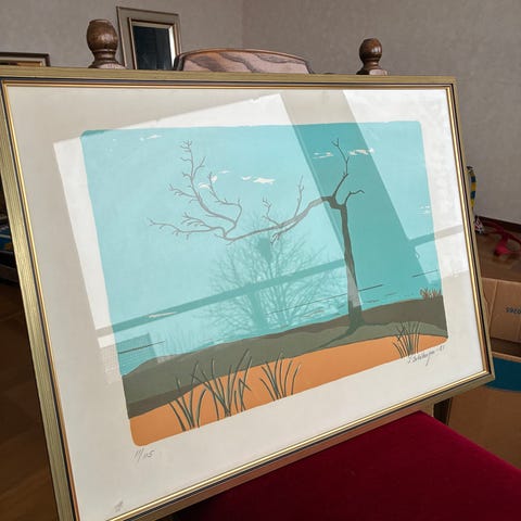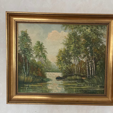 Osignerad målning tavla stadsmotiv i ram