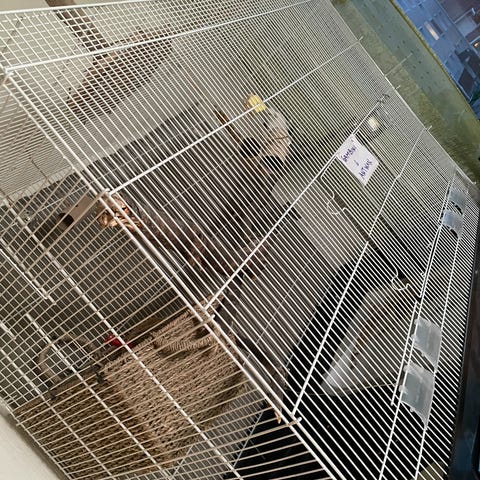 Fattas fodermatskålar, och klämmorna som man hakar fast gallret med bottendelen.