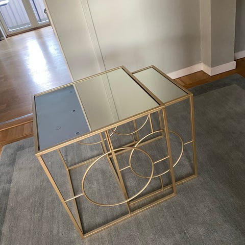 Säljer en stilren Carlos sido set champagne från SE MÖBLER i mycket bra skick. Sidobord är sparsamt använd och fungerar perfekt. Passar fint i vardagsrummet.