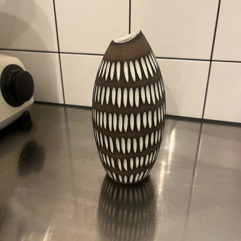 Dekorativ väggtavla med tydlig 70-talskänsla – passar perfekt för samlare eller dig som gillar retro och svensk designhistoria. Upsala-Ekeby var en av Sveriges mest framstående keramiktillverkare.