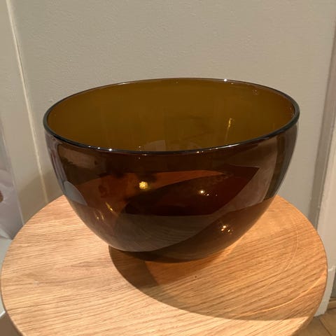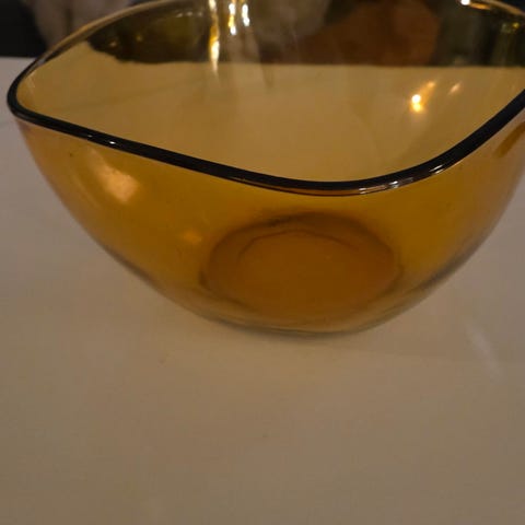 Bärnstensfärgad glasskål från Arcoroc Sierra ca 1960 talet Frankrike.