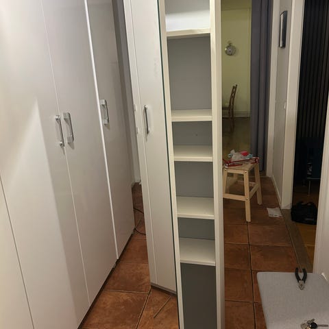 Skåpet står på (ca 21 cm höga) ben. Benen kan tas bort och man kan då montera skåpet direkt på väggen.