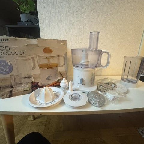 Ankarsrum Deluxe tillbehörspaket för köksmaskin. Paketet innehåller flera olika tillbehör för matberedning, bland annat köttkvarn med olika hålskivor, korvhorn, riv- och skivtrummor samt mixer- och matberedarskål. Avsett att användas tillsammans med Ankarsrum köksmaskin för olika typer av matlagning och förberedelse av råvaror, såsom malning av kött, korvtillverkning, rivning och skivning av grönsaker samt mixning.