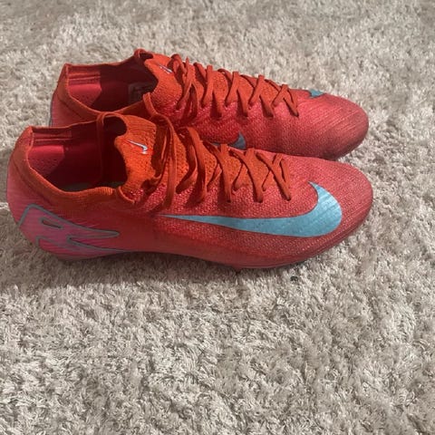 Säljer dessa snygga Nike mercurial air zoom vapor 16 elite Mbappe edition i storlek EU44, skorna är knappt använda inte mycket alls, säljer dessa nu då jag inte kommer ha någon användning av dem då jag har åkt på korsbandsskada så nu väljer jag att sälja dem då jag kommer vara borta från fotbollen ett tag och väljer istället att tjäna pengar på dem istället att dem ska bara ligga där, pris kan diskuteras!! Tveka inte att skriva!!