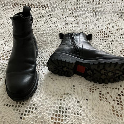 Vagabond stövlar i storlek 37. Modellen är svarta, med slät ovandel och låg klack. Ovandelen är i ett material som liknar läder och sulan är i gummi. Passar som vardagsstövlar under höst och vinter. Neutralt utförande som fungerar till många olika stilar och plagg.