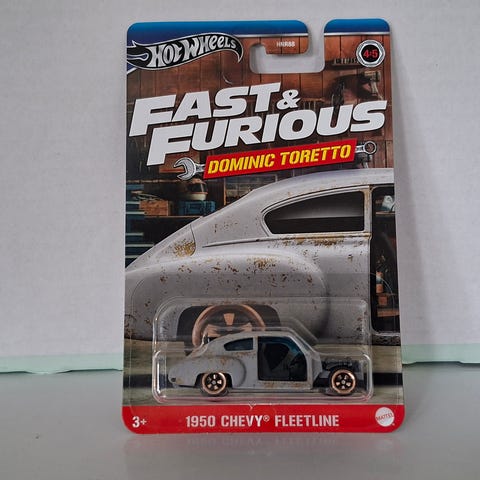 Bilen är grå med silverfärgade ränder och blå inredning. Den kommer i sin originalförpackning.