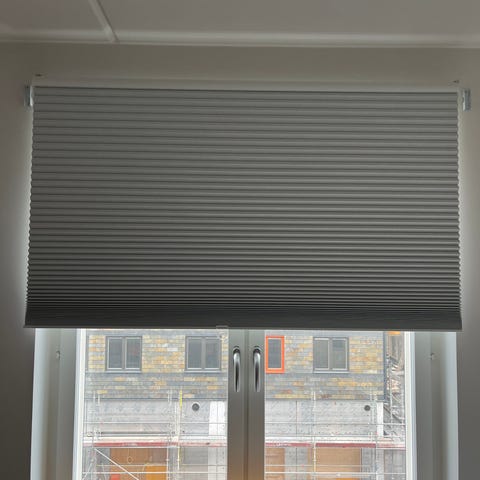 Säljer 2 st IKEA mörkläggande plisségardiner i grå färg. Gardinen är en veckad, upp- och nedrullningsbar modell som monteras ovanför fönstret. Passar för montering inomhus i vardagsrum, sovrum eller andra rum där man vill kunna justera insyn och ljusinsläpp. Materialet är textil med plisserad struktur.