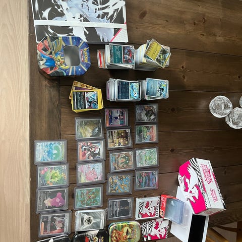 Hej säljer dessa fina pokemonkort från 2007 och uppåt i bulken runt 1000 kort sammanlagt varav 100 är holos rare. väldigt många glänsande kort också. Bara dom två Magikarpsen och totodilen är värda 1550kr ungefär. Bara att höra av dig vid minsta fråga eller fundering. Säljer som ett paket och om det är någon specifik som du vill ha är det bara att skriva.