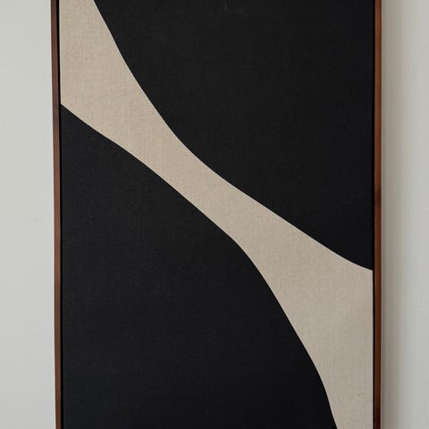 Väggdekoration med abstrakt motiv i svart, beige och vitt. 230x134 Rektangulär väggdekoration som passar i vardagsrum, sovrum eller hall. Tryckt motiv med dropp- och stänkeffekt som ger ett grafiskt uttryck. Kan hängas både horisontellt och vertikalt beroende på önskat uttryck och väggutrymme. Samt 3 soffkuddar.