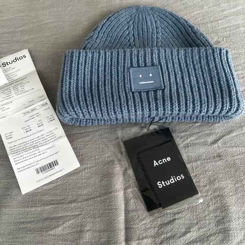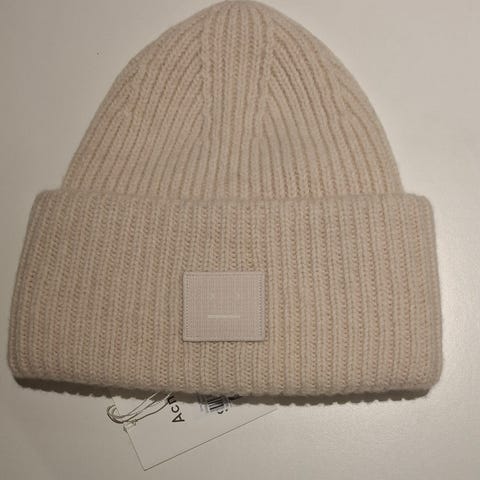 Acne Studios mössa i grå färg. Stickad i ull och utformad i one size för dam. Modellen har uppvikt kant och Acne Studios-logotyp framtill. Passar för vardagsanvändning under kallare väder.