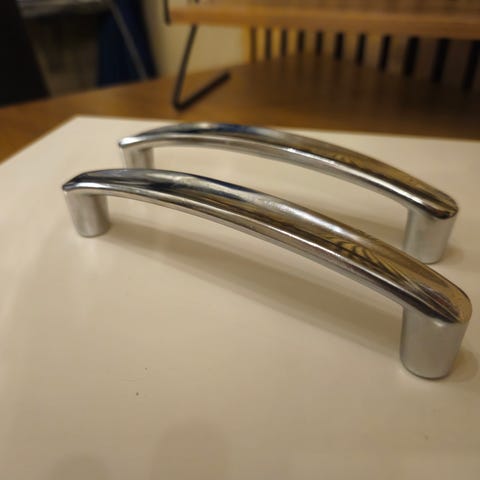 24 st kökshandtag - 96 mm mellan skruvhål. 12.5 cm långa, 3 cm höga. Skruvar följer med.
