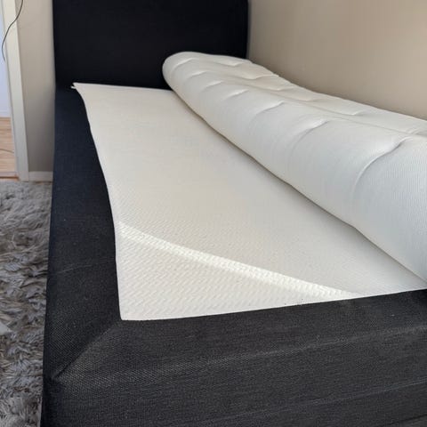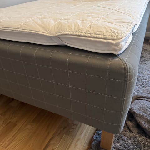 Liten fläck på bäddmadrassen. Överdraget till bäddmadrassen går att ta av (blixtlås) och tvätta.