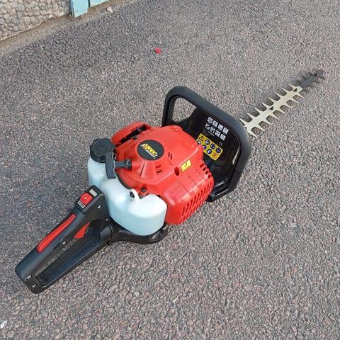 Stihl häcksax bensindriven. Modellen är avsedd för trimning och klippning av häckar och buskar. Maskinen har tvåhandsfattning med främre handtag och bakre gasreglage. Utrustad med svärd med dubbelsidiga knivar för effektiv klippning. Drivs med bensinblandning och har luftkyld tvåtaktsmotor. Passar för trädgårdsarbete där man behöver rörelsefrihet utan elkabel.