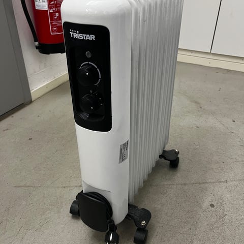 Cotech oljefylld elementvit elradiator. Fristående radiator med flera sektioner och hjul för enkel förflyttning. Utrustad med elsladd och stickkontakt för anslutning till vanligt vägguttag. Passar för uppvärmning av inomhusutrymmen som rum eller kontor där extra värme behövs.