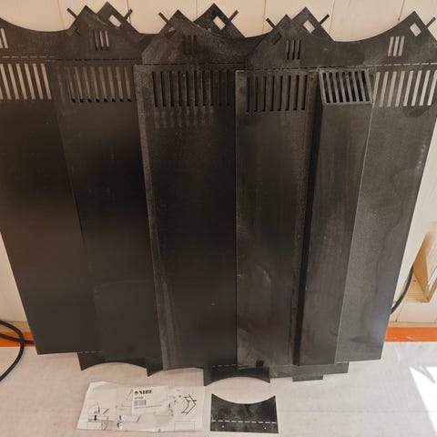 Isolerad skorsten som suttit på en kombipanna några år. 150 mm rökrör, 260 mm utvändigt. Säljes som parti enligt bild.
