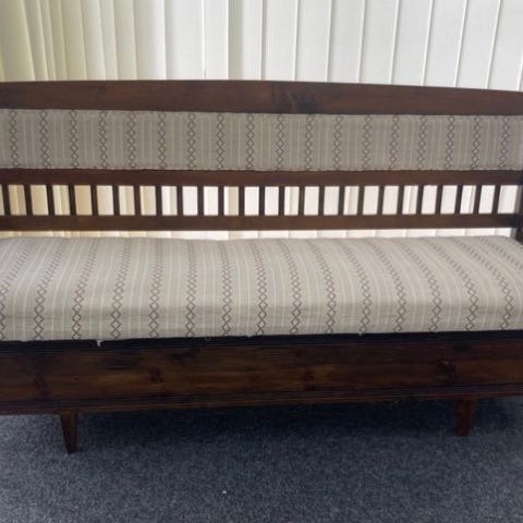Perfekt som extra sovplats, i vardagsrum, gästrum eller som statement piece i ett retroinspirerat hem. Mycket gedigen möbel i massivt trä.