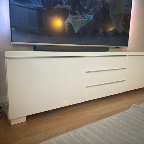 TV-bänk IKEA Bestå Burs i högglans vit.