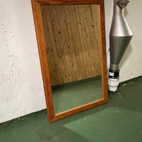 Fin Ikea-spegel i valnöt. Ögonmåttad till 80 cm i diameter