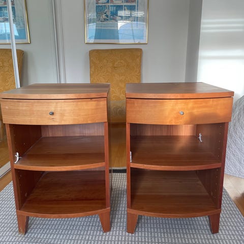 Ett elegant par klassiska sängbord, varsamt renoverade i matt svart finish med stilrena detaljer i mässing. Formen och proportionerna är tidstypiska med inspiration från allmoge / gustaviansk tradition, vilket ger ett tidlöst och sofistikerat uttryck.