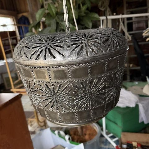Trearmad taklampa 50-tal utan skärmar säljes som ett objekt! Armatur i mässing och svartlackad plåt ej testad behöver nog ny el men kan bli fin med rätt skärmar