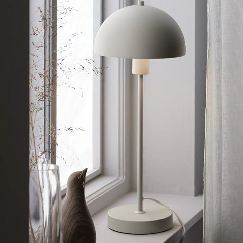 Portabel lampa från granit, Färgen är gråbeige och lampan kvar i sitt paket.
