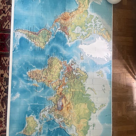 Väggkonst flerpanelstavla världskarta beige grå
