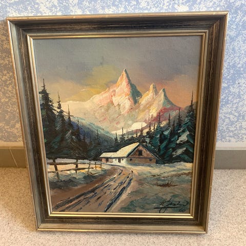 Svensk konstnär oljemålning hamnmotiv med träram