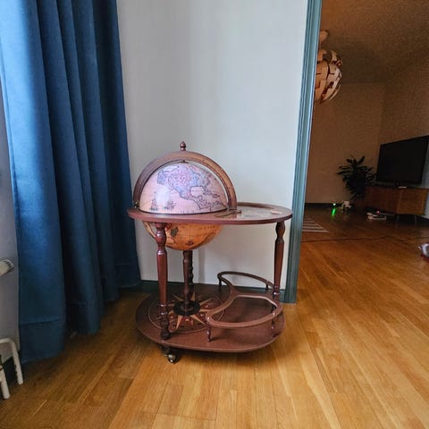 Fin jordglob-barvagn av okänt fabrikat. Skickas ej.