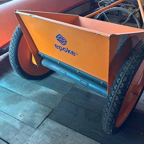 Spridare för grus/salt/gödsel som man drar efter åkgräsklippare eller ATV.