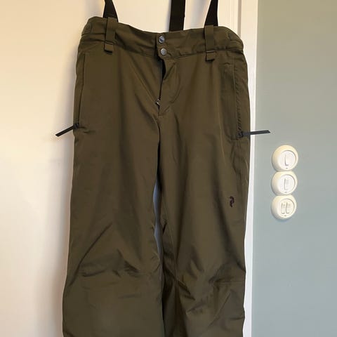 Peak Performance skidbyxor i marinblå färg med justerbara hängslen. Byxorna har dragkedjeförsedda framfickor och förstärkning vid bensluten. Insidan är fodrad för ökad komfort. Passar för skidåkning och andra vinteraktiviteter.