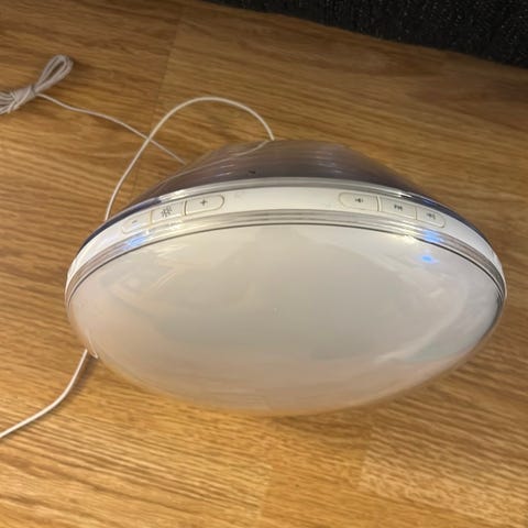Philips Wake-up Light väckarklocka med ljusfunktion. Produkten är utformad för att simulera soluppgång med gradvis ökande ljusstyrka före den inställda väckningstiden. Har inbyggd klocka och display på framsidan samt stöd för placering på bord eller nattduksbord. Ljusfunktionen kan kombineras med ljud enligt informationen på förpackningen. Avsedd för användning inomhus som väckningshjälp och belysning vid uppvaknande.