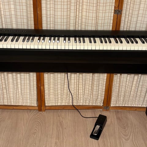Gear4music SDP-2 digitalpiano i svart utförande. Fullstort klaviatur med 88 tangenter. Kontrollpanel med olika ljud- och funktionsknappar samt volymratt. Notställ och sustainpedal ingår enligt bilder.