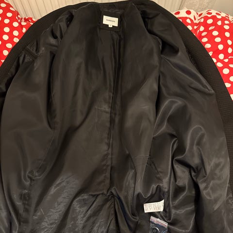 En knapp på ärmen saknas, se bild. Även små smutsfläckar här och där, se bilder.