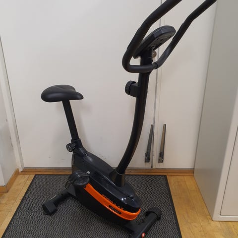 React motionscykel hopfällbar i svart färg. Cykeln har digital display som visar grundläggande träningsdata samt ett manuellt reglage för att justera motståndet. Utrustad med sadel, pedaler med remmar och styre med integrerad dator. Konstruktionen är hopfällbar för enklare förvaring när cykeln inte används. Lämplig för inomhusträning i hemmet.