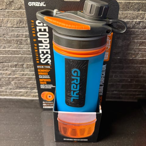 Flaska för tillverkning av vätevatten som skapas genom elektrolys direkt i flaskan. Inköpt på PlanetsOwn.