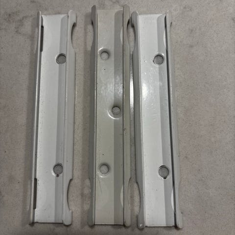 Konsolerna har förborrade hål för montering mot vägg och för infästning av hyllplan. Levereras med tillhörande skruv och beslag enligt bild. Lämpliga för uppsättning av hyllor eller andra lätta till medeltunga förvaringslösningar inomhus.