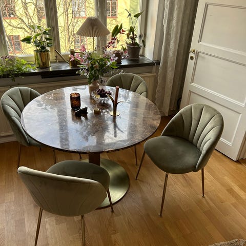 Rosa stolar i sammet som kan användas som matbordsstolar eller som fåtöljer. Supersköna och i fint skick! Priset går att diskutera mot en snabb affär.