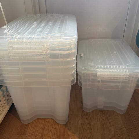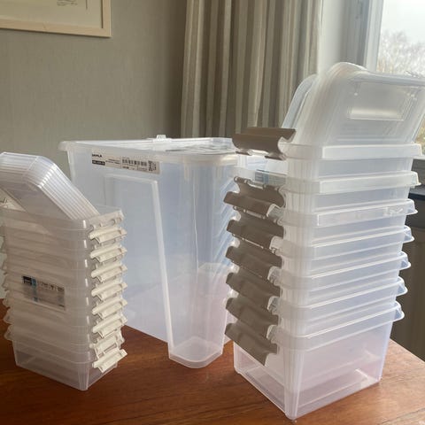 Alla har lock förutom de två största, vara en av de stora har lite skadade kanter. 200kr för allihop