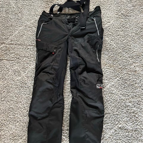 Lindstrands motorcykelhandskar i storlek M. Handskarna är svarta med röda detaljer och har förstärkta knogar samt extra skydd på ovansidan av handen. Lång krage med justerbar rem runt handleden för bättre passform. Materialet är en kombination av textil och syntetiskt läder med ventilerande partier. Passar för motorcykelkörning och liknande användning där skyddande handskar behövs.