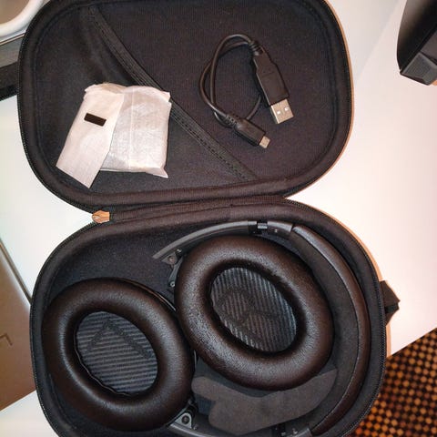 Bose QuietComfort over-ear hörlurar i svart färg. Sluten, omslutande design med vadderad huvudbygel och mjuka öronkuddar i ljusgrått för ökad komfort vid längre lyssning. Modellen är trådlös med möjlighet till kabelanslutning via medföljande ljudkabel med 3,5 mm-kontakt. Förvaringsfodral i hårt material samt kort laddkabel ingår. Passar för användning med mobil, surfplatta, dator och andra enheter med kompatibel anslutning.
