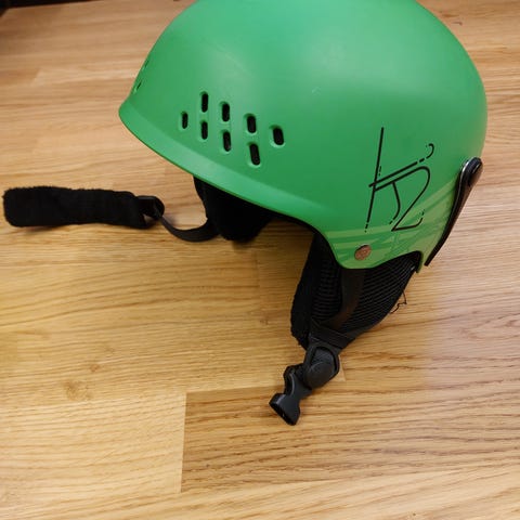 Ventilationsöppningar på sidorna samt fäste bak för skidglasögon.