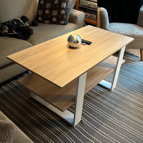 Säljer mitt soffbord pgr av flytt. Bordet kan användas både som soffbord och som sidobord/hylla. Bordet säljs för 450kr men pris kan diskuteras vid snabb affär. Måtten ser du på sista bilden.