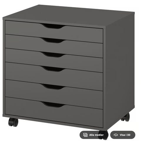 Hurts med 5 lådor på hjul i svart färg. Mått: höjd ca 66 cm, djup 48 cm. Försedd med fem utdragslådor med integrerade handtag och hjul undertill för enkel förflyttning. Passar som förvaringsmöbel i exempelvis kontor, arbetsrum eller hobbyrum för organisering av papper, kontorsmaterial eller andra mindre föremål.