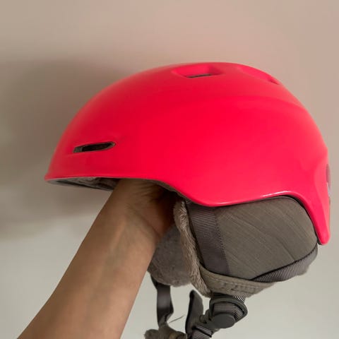 Hipe skid- och snowboardhjälm i rosa färg för barn. Hjälmen har justerbart spänne i nacken för bättre passform samt vadderade öron- och hakremmar. Ventilationsöppningar upptill bidrar till luftcirkulation. Utsida i hård plast och fäste bak, exempelvis för skidglasögonrem.