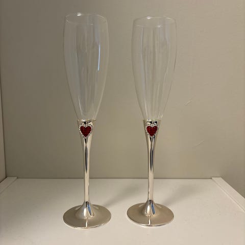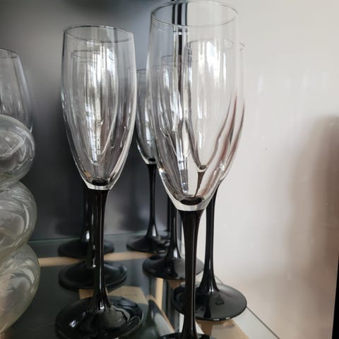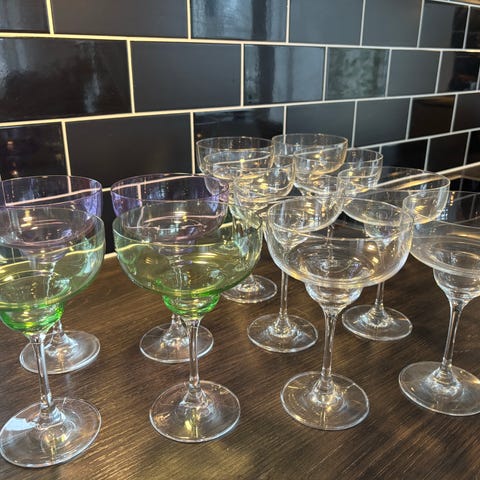Champagne coupeglas med hög fot, lämpliga för servering av bubbel och drinkar. Nyskick.