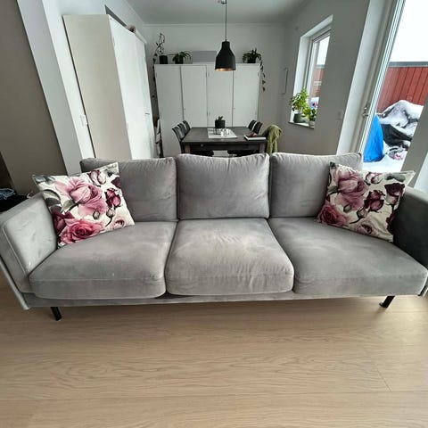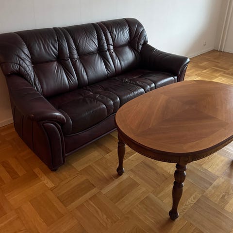 Mycket fin soffa, fåtölj, bord, matta