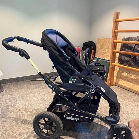 Den absolut bästa vagn vi haft. Kompakt, lättkörd, lätt att fälla ihop, enkelt att ta ut ligg/sittdel ur chassit. Insatserna är vändbara. Fällbar sittdel. Punkteringsfria hjul. Endast upphämtning på plats i Uppsala.